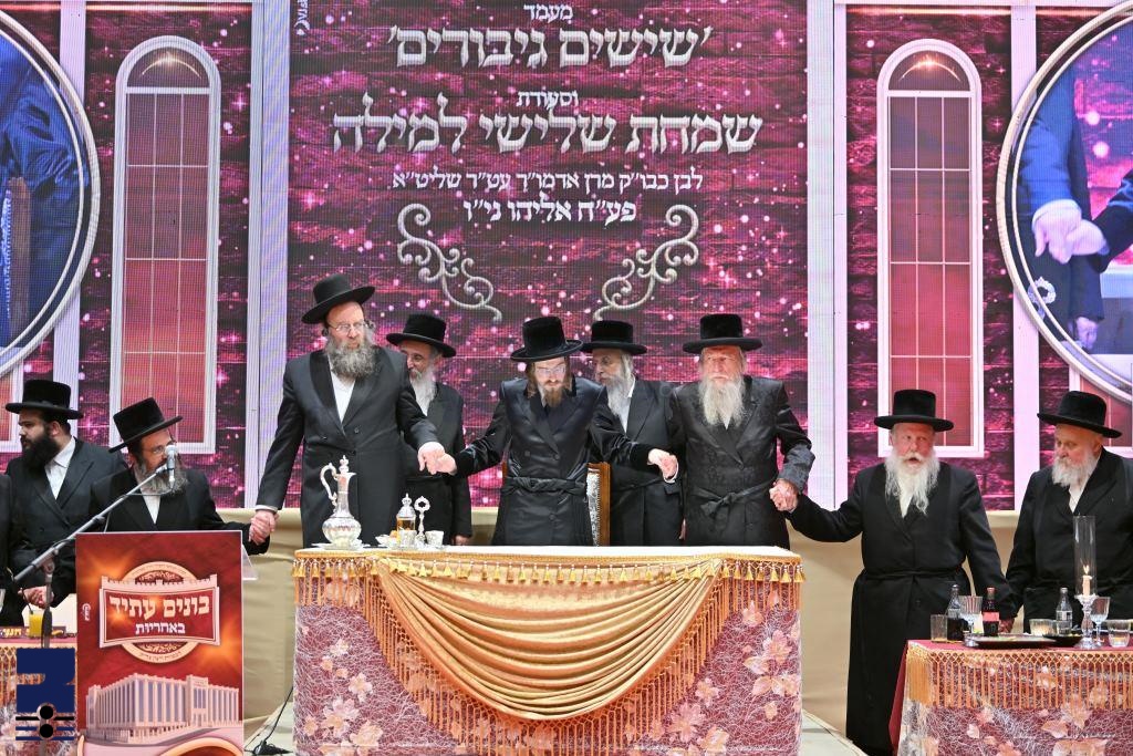 דעם מאנטאג נאכט נאך מעריב איז כ"ק אדמו"ר מסאדיגורה שליט"א אריינגעקומען אין די פראכטפול באצירטע היכל הטישן וואס איז ספעציעל אויסגערישט געווארן לקראת די שמחת שלישי למילה פון די שמחת הברית לבן הנולד ביים רבי'ן שליט"א אינאיינעם מיט א אריסטאקראטישע מסיבה פאר נגידי עם.