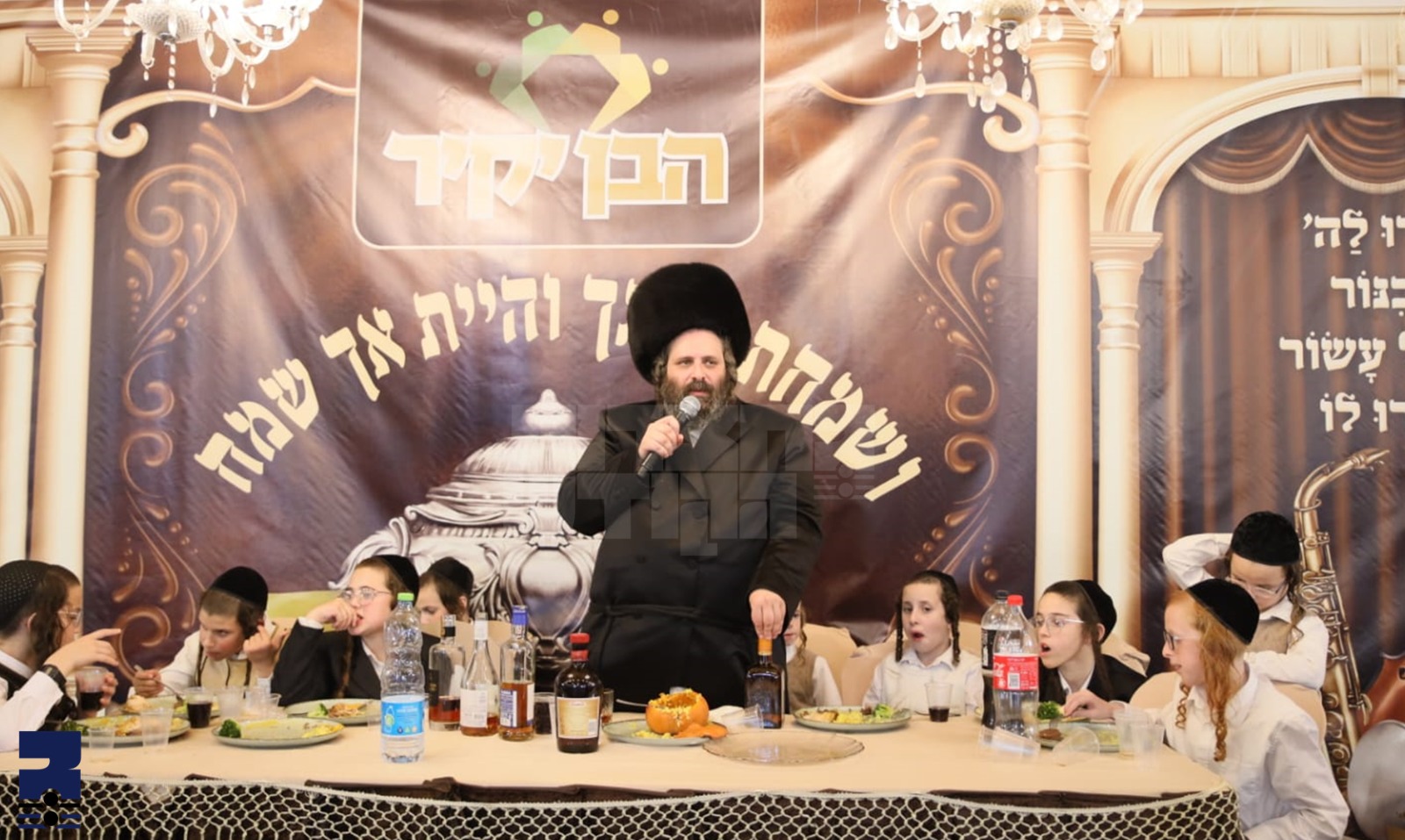 הויפט בלאט באריכט יתומים אין יתומות הויפט בעלי השמחה ביי שמחת בית גור, חתונה בבית הרה"צ רבי שלמה צבי אלתר יו"ר ארגון הבן יקיר