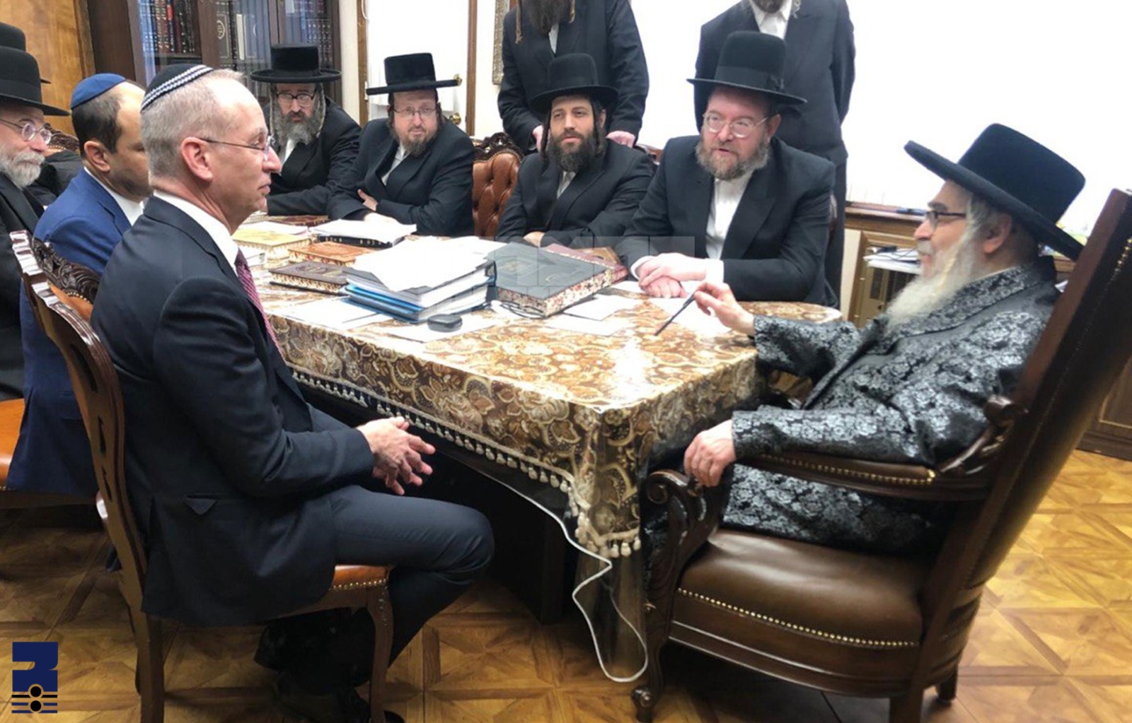 זייענדיג בביתו נאוה קודש פונעם רבי'ן איז פארגעקומען א ספעציעלע אויפנאמע אינעם רבינ'ס פראוועט צימער, וואו עס זענען געווען אנוועזנד די חברי הצלה פון קרית יואל, און די ראשי חברה הצלה אין וויליאמסבורג, מען האט ארומגעשמועסט פארשידענע ענינים העומדים על הפרק לטובת חולי ישראל, און דער סאטמארער רבי האט ווארעם אנגעוואונטשן זיי זאלן זעהן הצלחה און סייעתא דשמיא.
