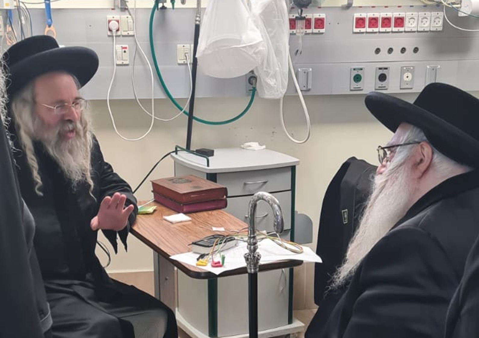 היינט פארמיטאג איז כ"ק האדמו"ר מצאנז שליט"א אנגעקומען צו די לניאדא שפיטאל אין קרית צאנז אויף ביקור חולים ביי כ"ק האדמו"ר מראחוב שליט"א וועלכע איז דעם אנהייב וואך אפגעפירט געווארן אין שפיטאל נאכן ליידן פון א הארץ אטאקע ל"ע. די רבי האט דורש געוועהן בשלומו זיך אינטרעסירנדיג אינעם מצב הבריאות אין אנגעוואונטשן א רפואה שלימה.