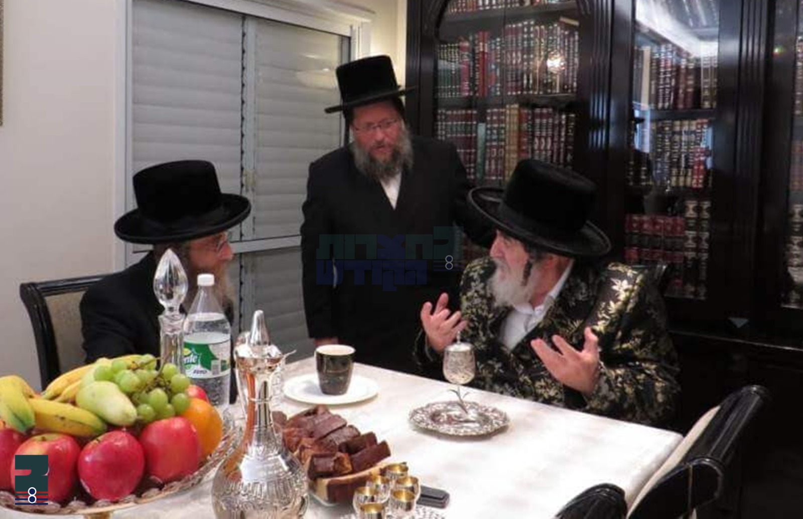 פון דארט איז די רבי צוגעפארן צום שטוב פון מקורבו הרב יעקב טעסלער חבר הכנסת וואו די רבי האט זיך אויפגעהאלטן א לענגערע וויילע דורכצושמועסן פארשידענע ענינים העומדים על הפרק.