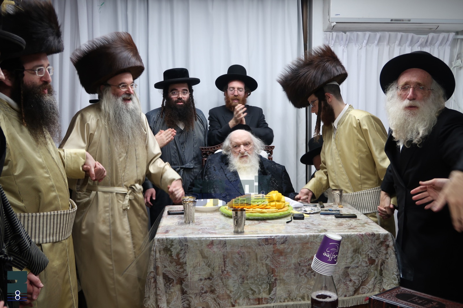 נעכטן זינטאג נאכט האט מרן פוסק הדור הגאון האדיר רבי משה שטערנבוך שליט"א אפגעראכטן א ספעציעלער שבע ברכות לרגל די חתונה פון החתן א זוהן פון מקורבו ונאמן ביתו הרב אהרן סאמעט, די פוסק האט געטרינקען לחיים אין טועם געוועהן פון די פירות אין דאן ארויס אין א ריקוד מיט די חתן אין מחותנים.