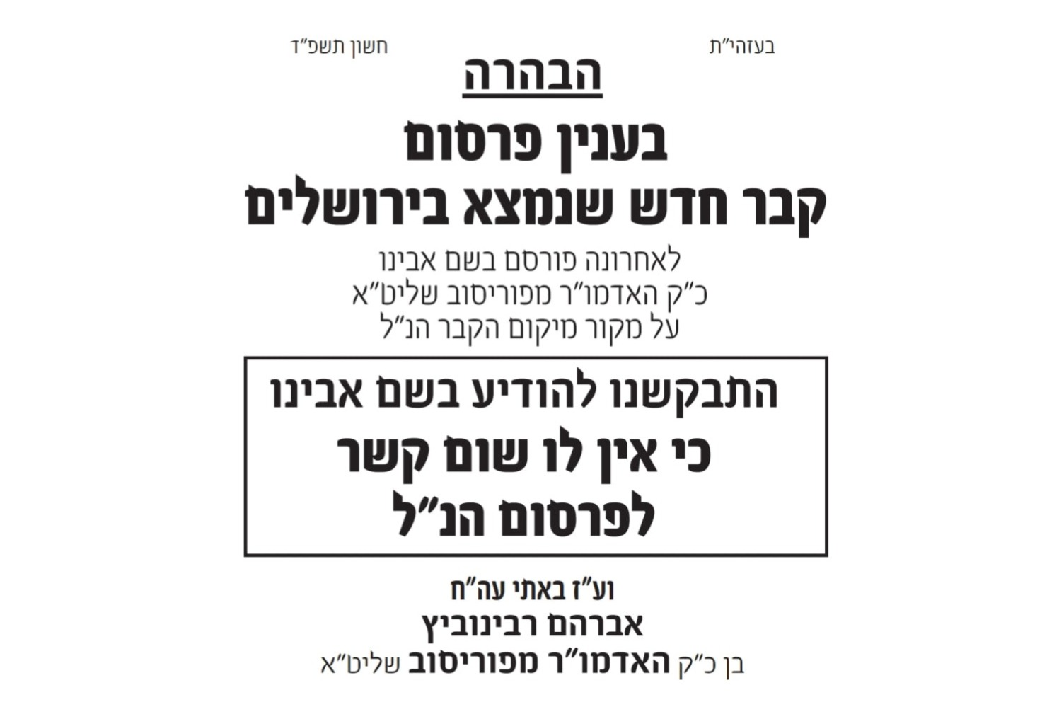להעמיד דברים על דיוקם • הבהרה פון האד' מפאריסוב איבער מקום הקבורה פון בנימין בן יעקב