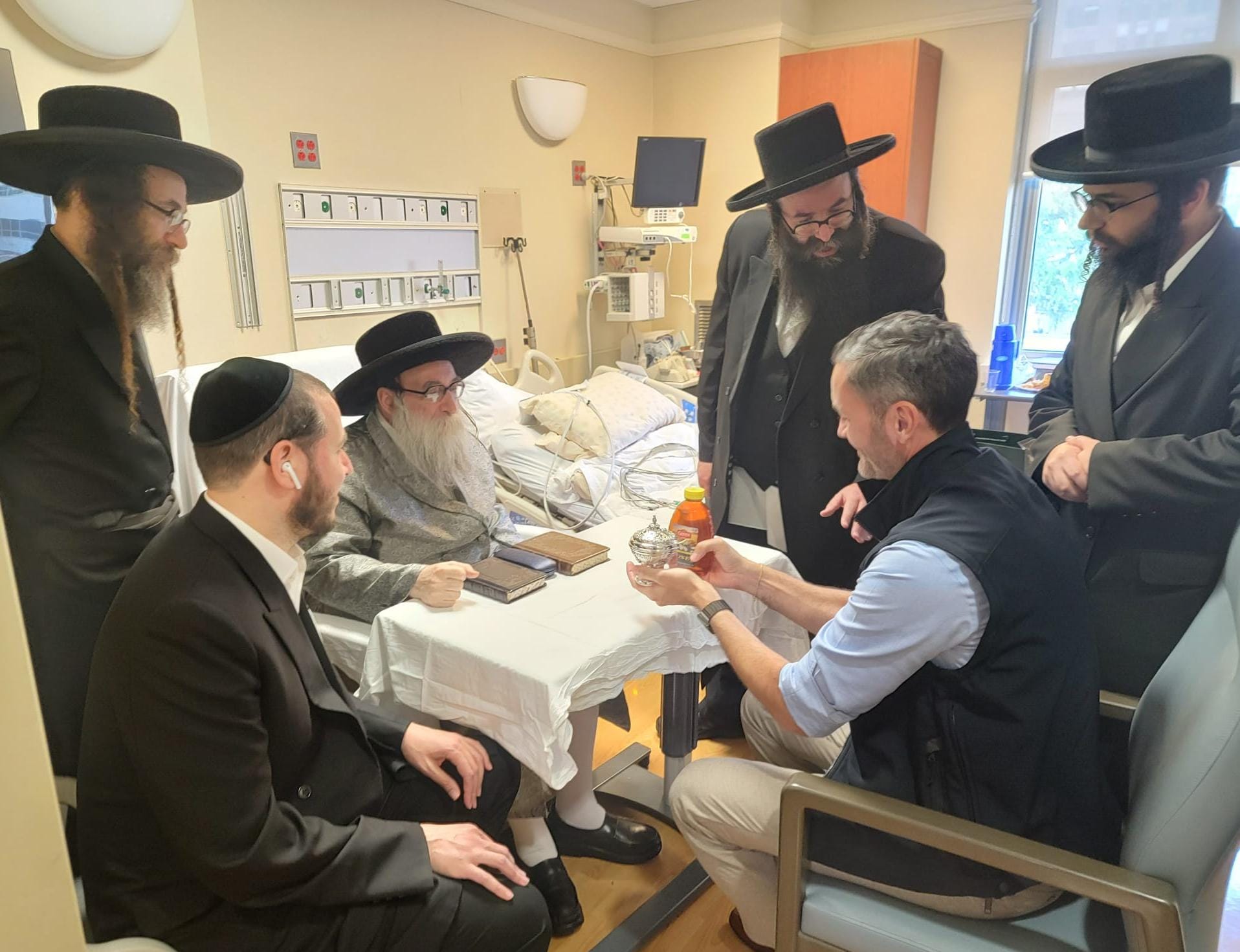 היינט פארמיטאג איז די פרעזידענט פונעם לעניקס הילל שפיטאל דר. בעקעראון ארויפגעקומען צו כ"ק האדמו"ר מתולדות צבי דספינקא שליט"א לרפו"ש אינאיינעם מיטן שפיטאל ליעזאן העסקן ר' שמעון וואקס מקבל צו זיין ברכת קודש פונעם רבי'ן שליט"א. די רבי האט זיך באדאנקט פאר די הילף און דערביי געשאנקן א מתנה א זילבערנעם האניג האלטער און דבש חי אלס הכרת הטוב.
