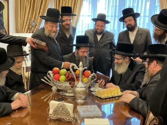 היינט צופרי נאך שחרית איז די ראחמיסטריווקא רבי שליט"א צוריק געקומען אויף ביקור גומלין צום אכסניא פונעם טאלנא רבי'ן שליט"א אין שטוב פון הנגיד החסיד ר' משה דיימאנד הי"ו אין בארא פארק.