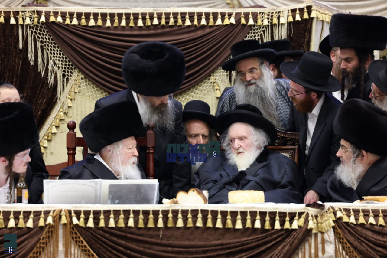 יעצט אויפדערנאכט איז מרן פוסק הדור הגאון האדיר ראב"ד ירושלים שליט"א אנגעקומען זיך משתתף זיין ביי די גרויסער חתונה בחצר הקודש גור, וואו ער איז אויפגענימען געווארן ביותרת הכבוד דורך כ"ק האדמו"ר מגור שליט"א