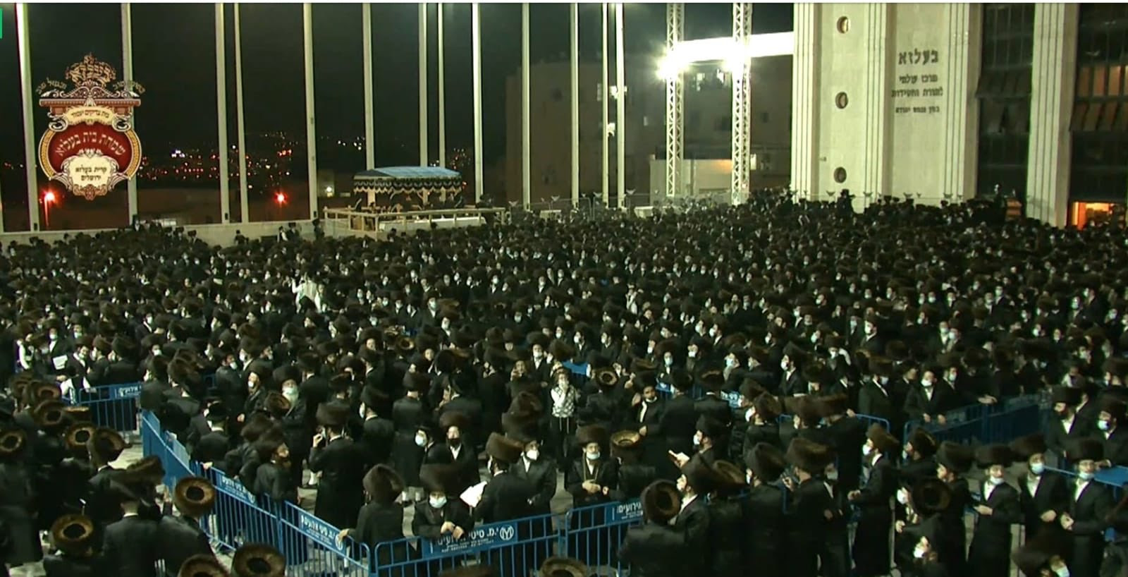 נאכ'ן מעמד החופה האט זיך דער רב שליט"א און די מחותנים אוועקגעזעצט תחת כיפת השמים און עס איז פארגעקומען א 'מסיבת לחיים' וועלכע האט אויסגעשפיט די פאליציי מיינענדיג אז דאס איז די סעודת החתונה וועלכע קומט פאהר אויף א קלענערע פארנעם אינדרויסן פון זאל. נאכדעם וואס די פאליציי זענען אוועגעגאנגען פון שטח, זענען זיך די חסידים צוזאמגעקומען אין 'היכל הגרויסע שטוב' (דאס ארט ווי דער רב שליט"א פירט געווענליך די עריכת השולחנות) און די שמחת החתונה איז געפראוועט געווארן ברוב פאר והדר מיט גרויס דערהויבענקייט און העכערע ספערן. אלע טירן און טויערן וועלכע פירן געווענליך צום ביהמ"ד זענען פארקלאפט געווארן מיט ברעטער און נאר פון א זייטיגן אונטער טירל האט מען געקענט אריין גיין צו די שמחה וועלכע איז געווען דעזיגנירט נאר פאר די חסידים. ביי די טירן זענען געווען אוועק געשטעלט מעטאל דיטעקטארס נישט אריין צו לאזן קיין טעלעפאנען און פאטאגראפירער אפאראטן עס זאל נישט שאטן קיין בייז אויג. פארט האבן זיך די פאליציי דערוואוסט איבער דעם גרויסן חתונה און האבן אריינגעגעבן א קלאגע אויסצופארשן די הנהלת הקהלה אויף דאס פארלעצן די געזונטהייט מאסנאמען אין ליכט פון די עפעדעמיע.