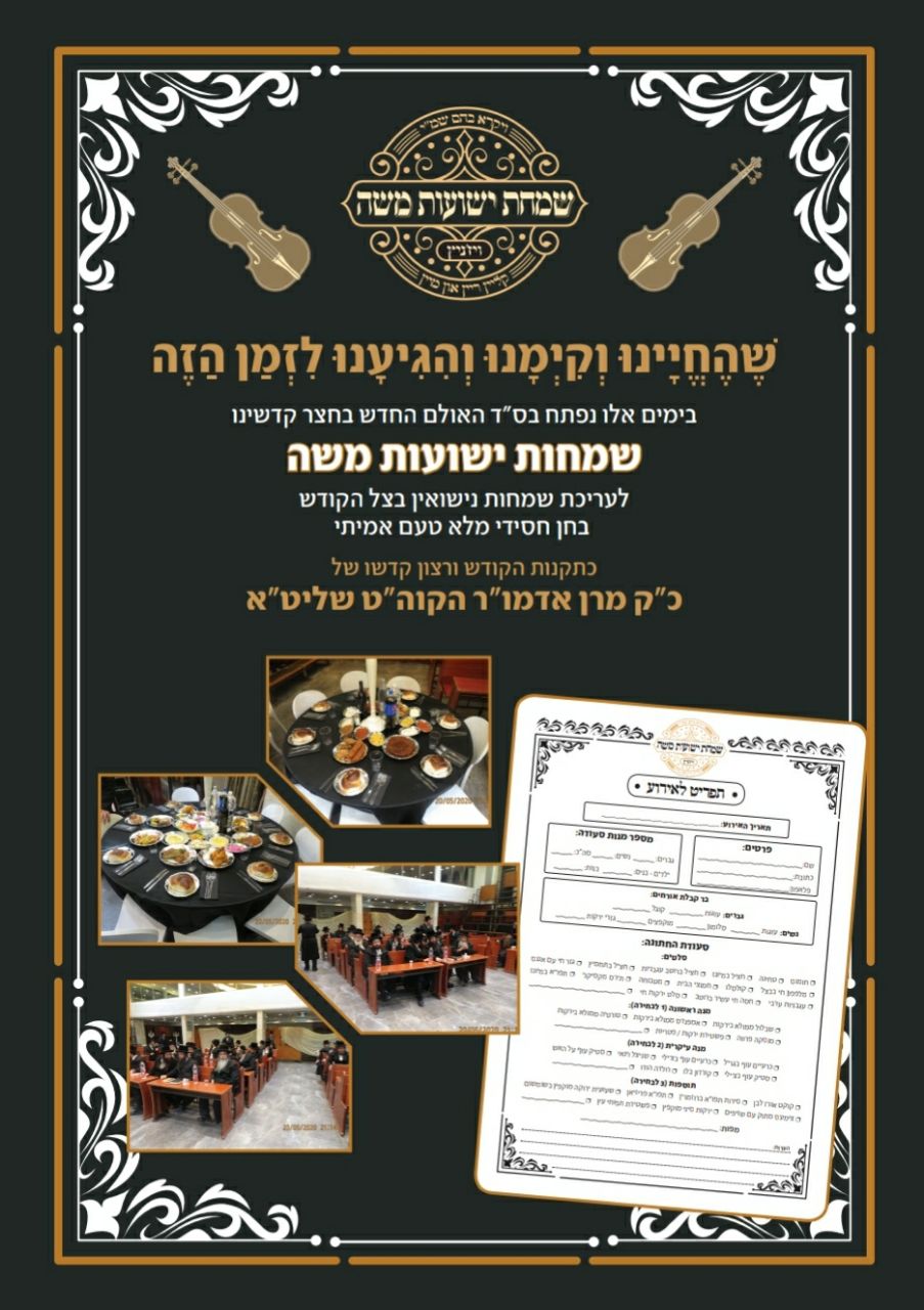 ווי ברייט באריכטעט האט כ"ק אדמו"ר מוויזניץ שליט"א אויפגעפאדערט די עסקנים אהערצושטעלן דעם גרויסן 'היכל הטישן' צו א 'חתונה זאל' ווי די חסידים זאלן קענען חתונה מאכן פאר א גאר ביליגע פרייז. נאך א קורצע צייט ארבעט איז די היכל הטישן הערליך איינגערישט געווארן צו א חתונה זאל און די ערשטע חתונה וועט געפראוועט ווערן שוין די וואך. בפקודת הקודש פון רבי'ן שליט"א איז די חתונה זאל גערופן געווארן 'אולם שמחות ישועות משה'.