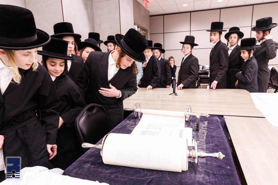 שוין עטליכע וואכן וואס די קינדער גרייטן זיך בהכנה דרבה צום גרויסן מעמד און אין די פארגאנגענע טעג איז אפגעהאלטן געווארן א אייגנארטיגע מעמד סיום כתיבת האותיות אין ביהמ"ד פונעם תלמוד תורה ווי אלע קינדער האבן מיטגעהאלטן ווי זייערע מלמדים שרייבן אריין אותיות אין די ספר תורה.