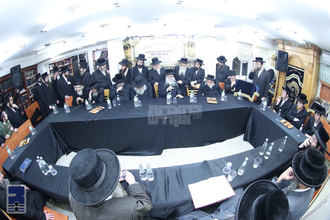 בראש המסובים זענען געווען אנוועזנד כ"ק אדמו"ר ממשכנות הרועים שליט"א, מרן ראש הישיבה הגאון האדיר רבי יהושע דוד טורטשין שליט"א מנהיג קהילות הפרושים, הגה"צ אבד"ק סאטמאר ירושלים שליט"א, כ"ק אדמו"ר מקרעטשניף סיגעט שליט"א, הגאון רבי נתנאל פרץ מאירזאהן שליט"א ראש ישיבת חכמת התורה, הגה"צ רבי שלמה זלמן ווייס שליט"א אב"ד שערי טוביה, און נאך גדולי הרבנים ומורי הוראה פון די עדה החרדית, עסקנים חשובים און בני המשפחה פון די אברכים אסירי ציון.